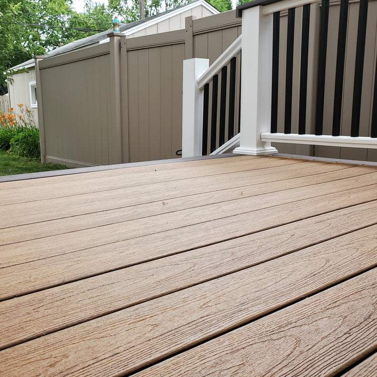 Under normal wear, just about all decking lines will scratch or collect dirt to some extent. Some decking lines hide scratches better due to the texture and variegation, or dirt and dust can blend into the decking colors because it becomes a part of the visual texture.