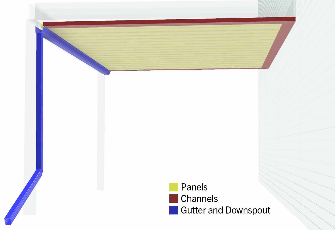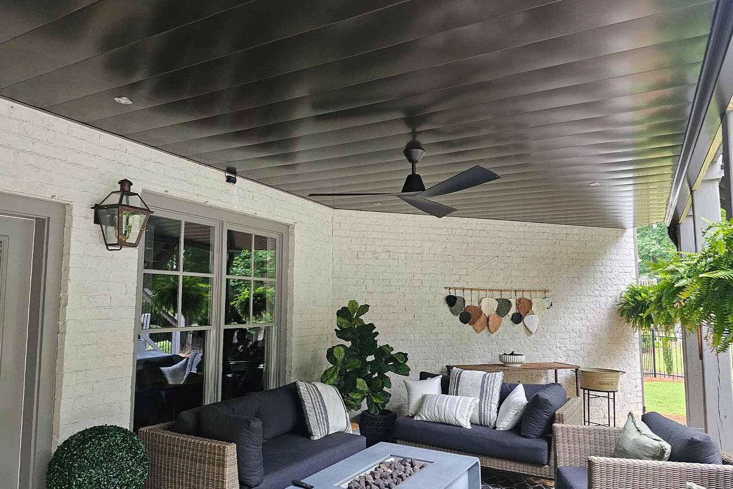 Haven's metal underdecking panel system is a premium-appearance, mid-range priced paneling system that can be installed to the underside of a finished deck frame to waterproof the area beneath a deck. Lights, fans, speakers, and more accessories can be accommodated with waterproof connection points.