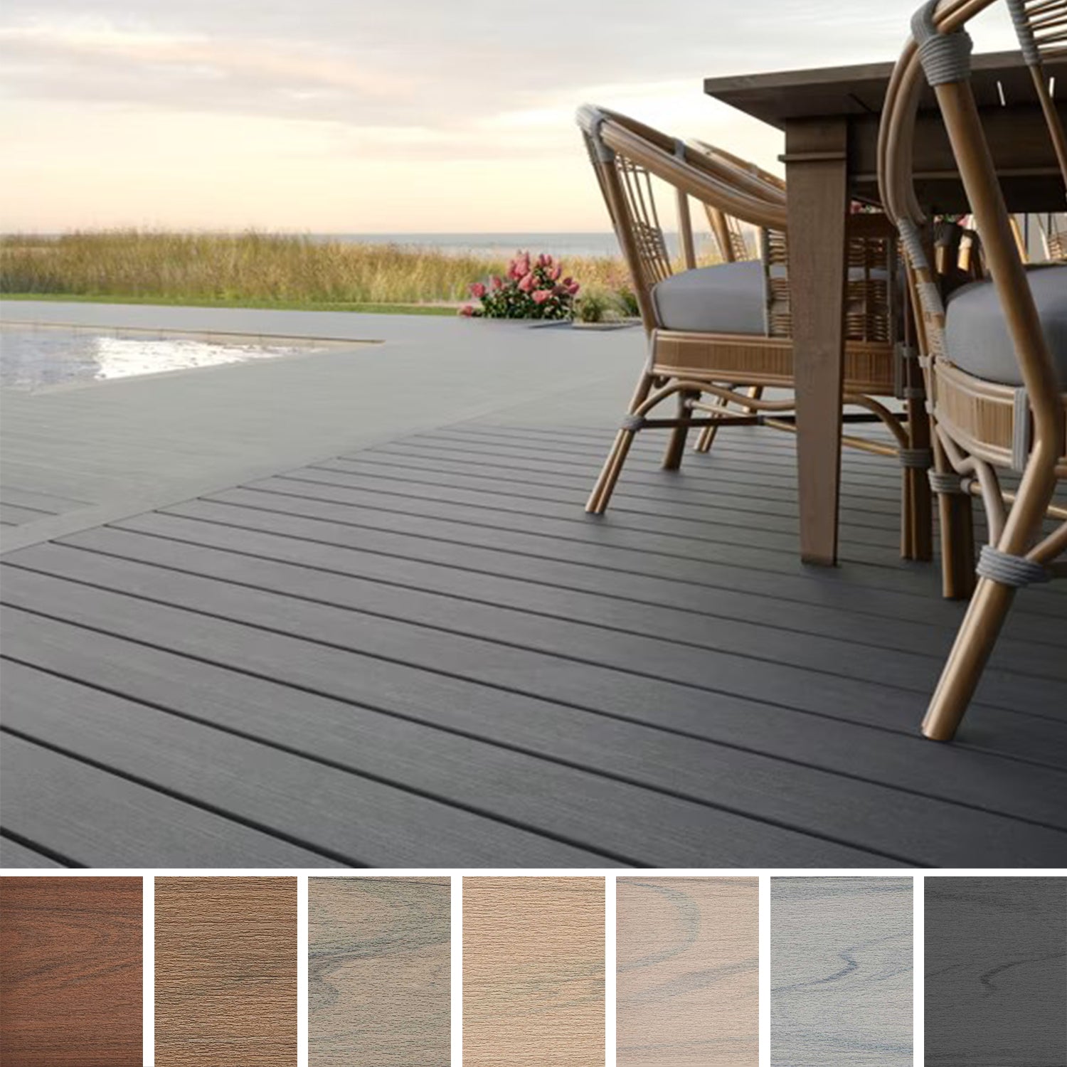 Deckorators' premium Surestone mineral-based composite decking, available in four decking widths and six...