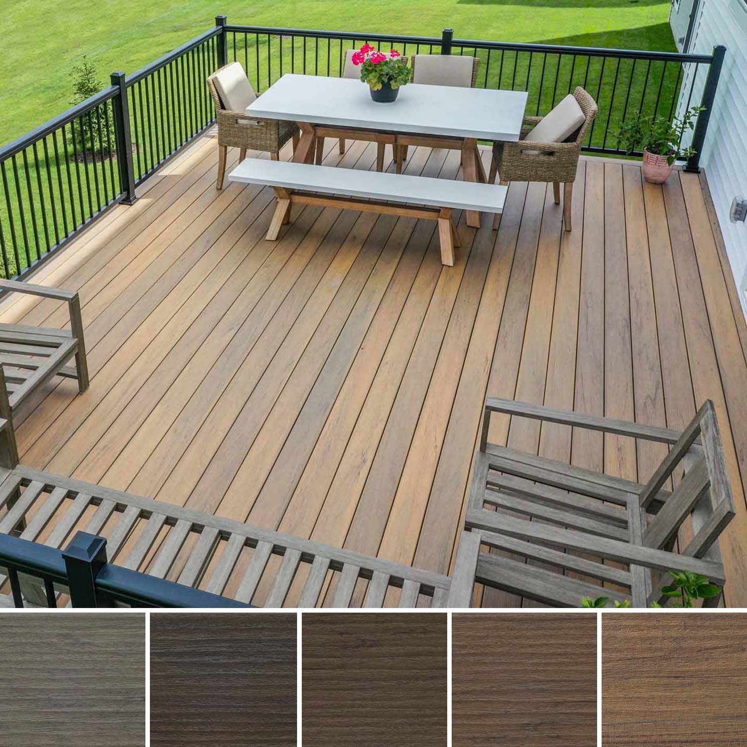 Premium decking usually features a 50+year warranty, realistic variegated coloring, and more unique texturing. Premium collections usually feature more color options, which makes for unique styling to coordinate with the rest of your project