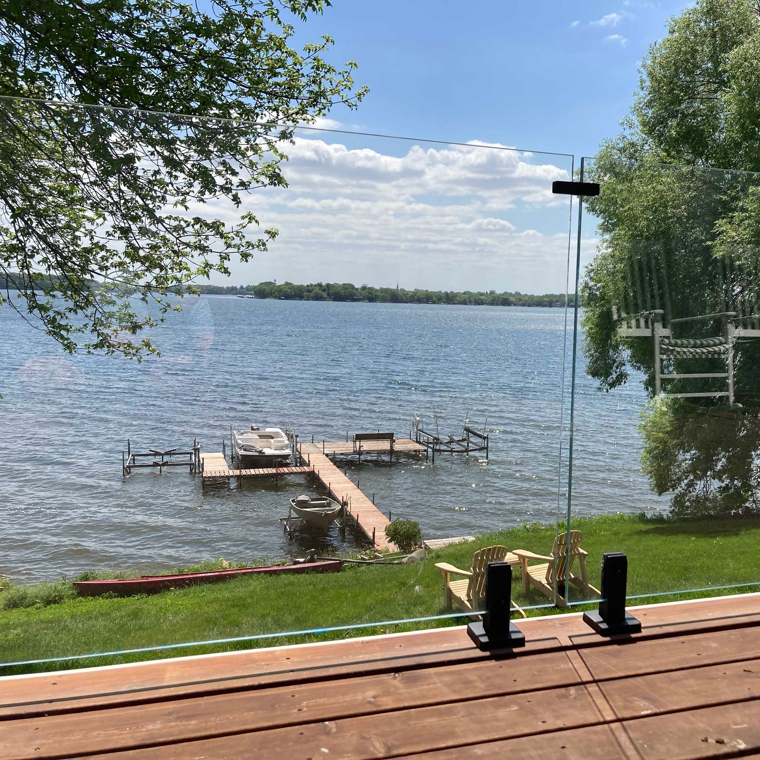 "Framed" glass railing systems use a metal top and bottom rail to...