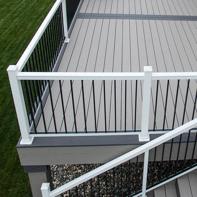 Powder-coated aluminum railing kits and surface-mount posts for decks, manufactured by Digger...