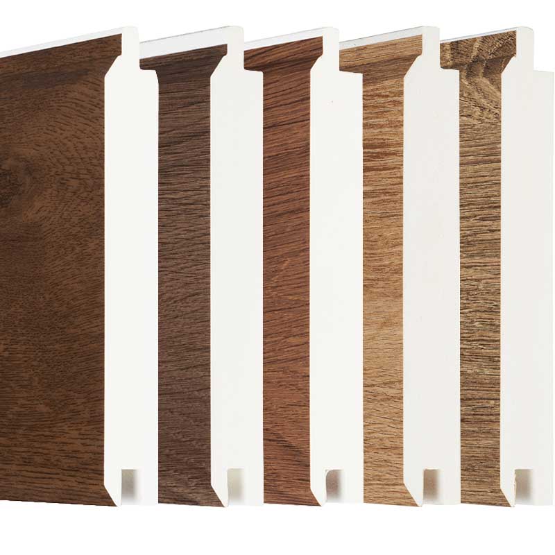 The Alpine collection features PVC paneling boards with a printed woodgrain pattern,...