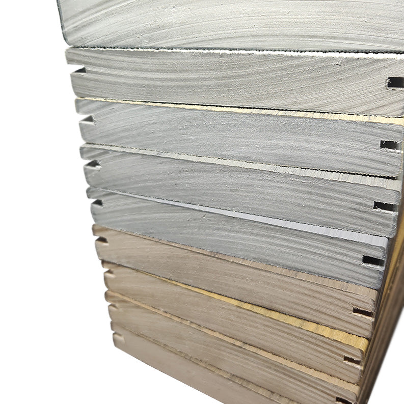 All Surestone boards are capped with a plastic similar to the cover of Titleist golf balls, making it resilient and resistant to scratching. Woodgrain texturing is added for appearance and slip resistance.