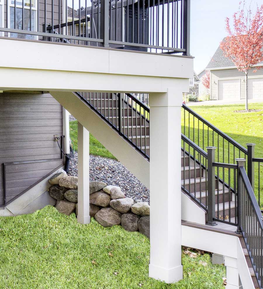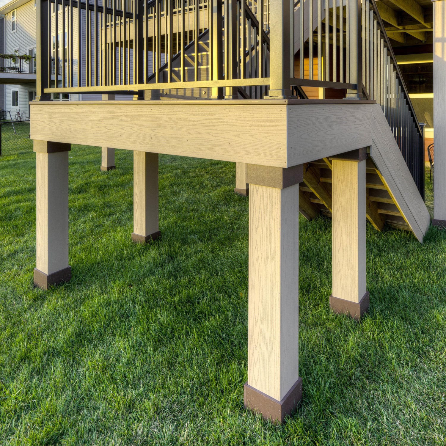 If you're looking for a fascia option that matches the white trim on your house, or just want a bright clean look, we have white PVC fascia available. We also cut our own deck-efficient widths and lengths of Azek Frontier material to be as efficient with your material as possible. This is especially helpful when covering posts, risers, and stairs (which require 15" of width on the sides).