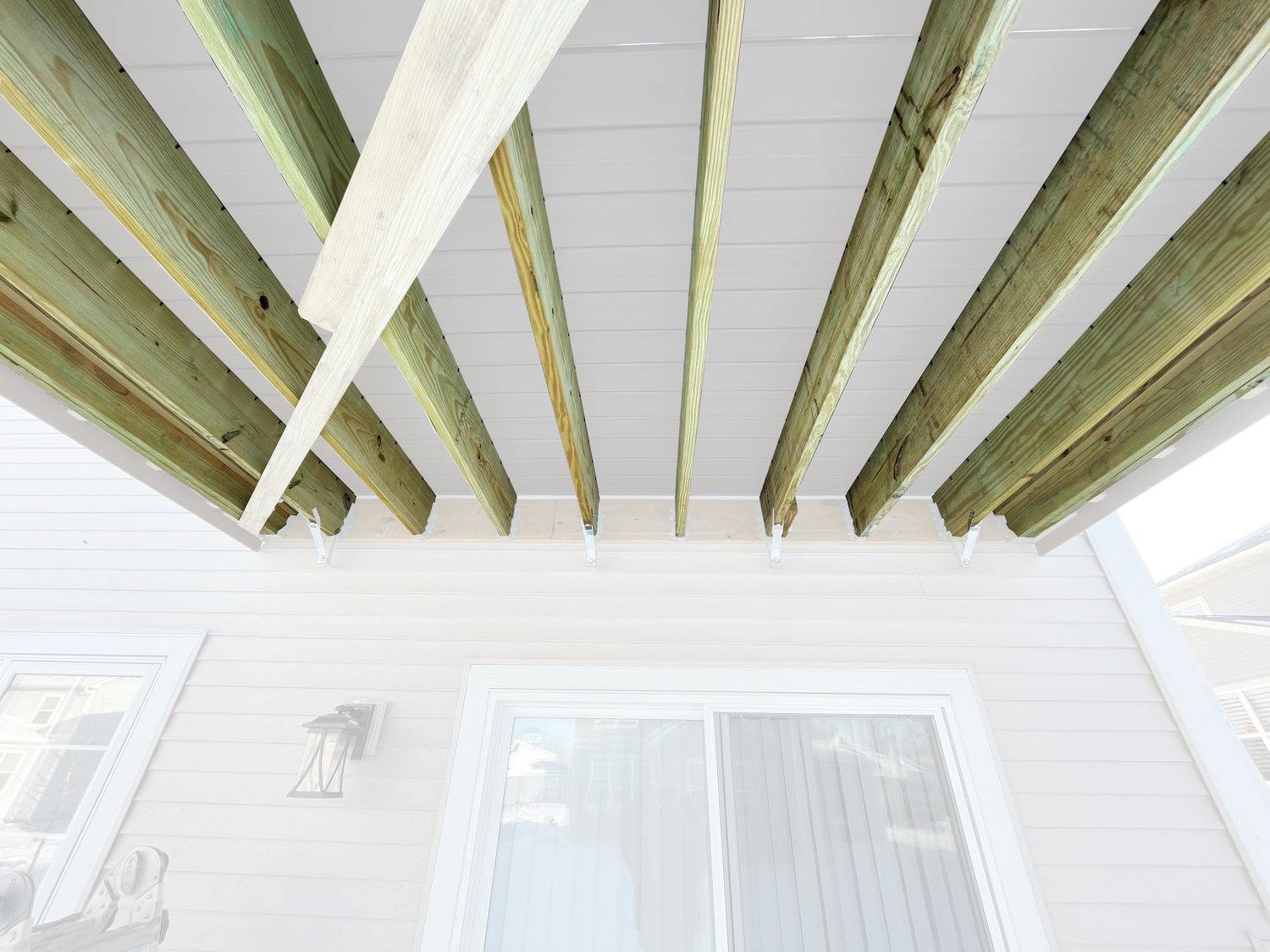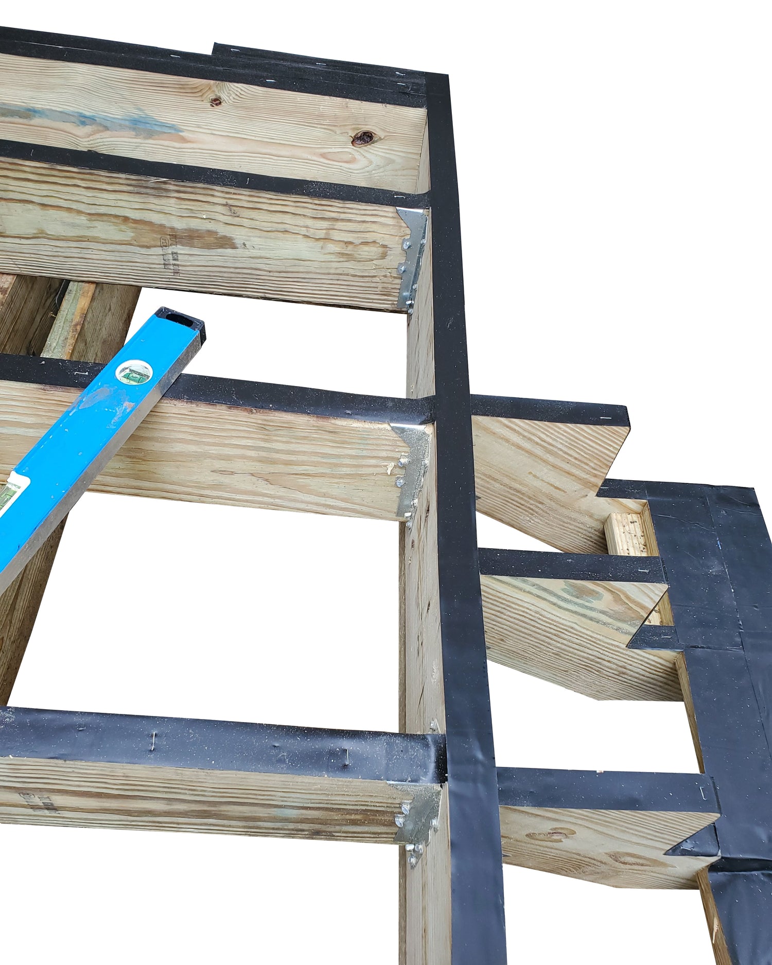 Because low-maintenance decking and railing both have such a long lifespan, wood deck framing is usually the part of the deck most susceptible to weathering and rotting. With this in mind, many builders add waterproof joist tape to the top of each joist, which ensures that standing water doesn't rot the top of the joist.