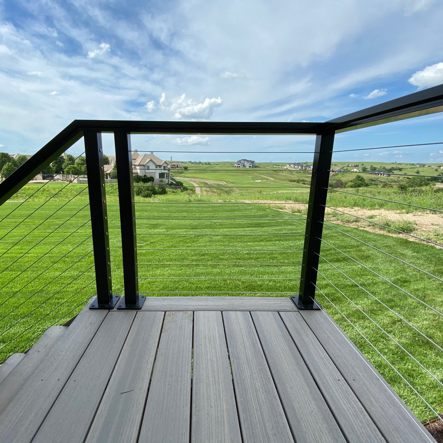 Cable railing often uses cables run horizontally, usually for a view that is less obstructed than a baluster rail.
