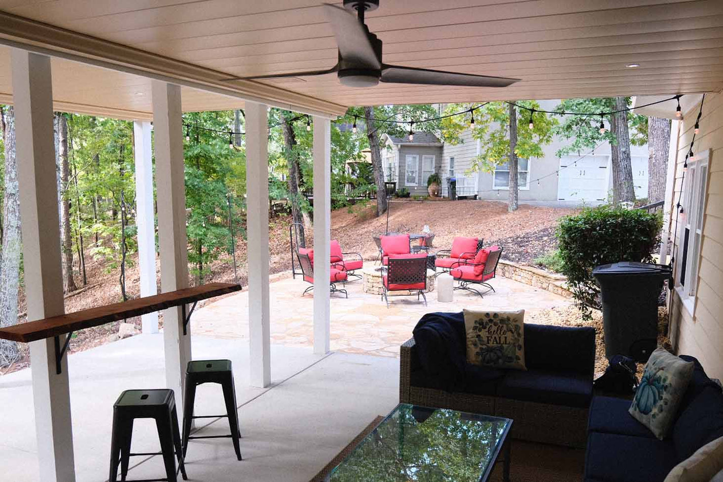 A competitively-priced metal under-deck paneling system with options for wirelessly-controlled speakers and lighting