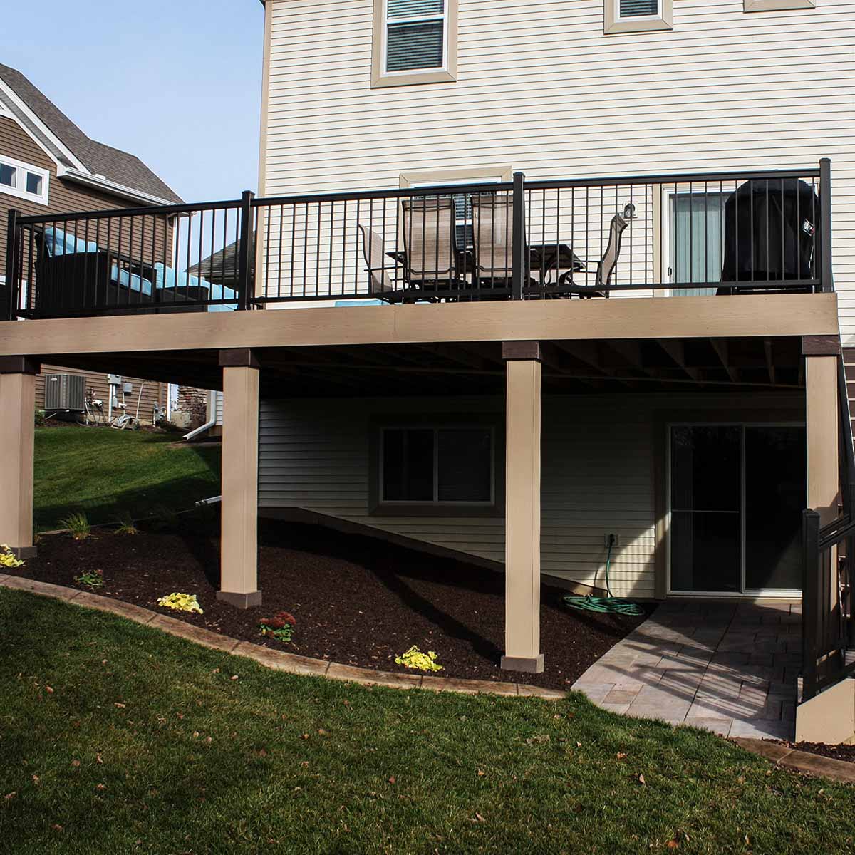 When working with composite rail systems, we recommend using a structural surface-mount post to replace the 4x4s, and make framing and installation simpler.