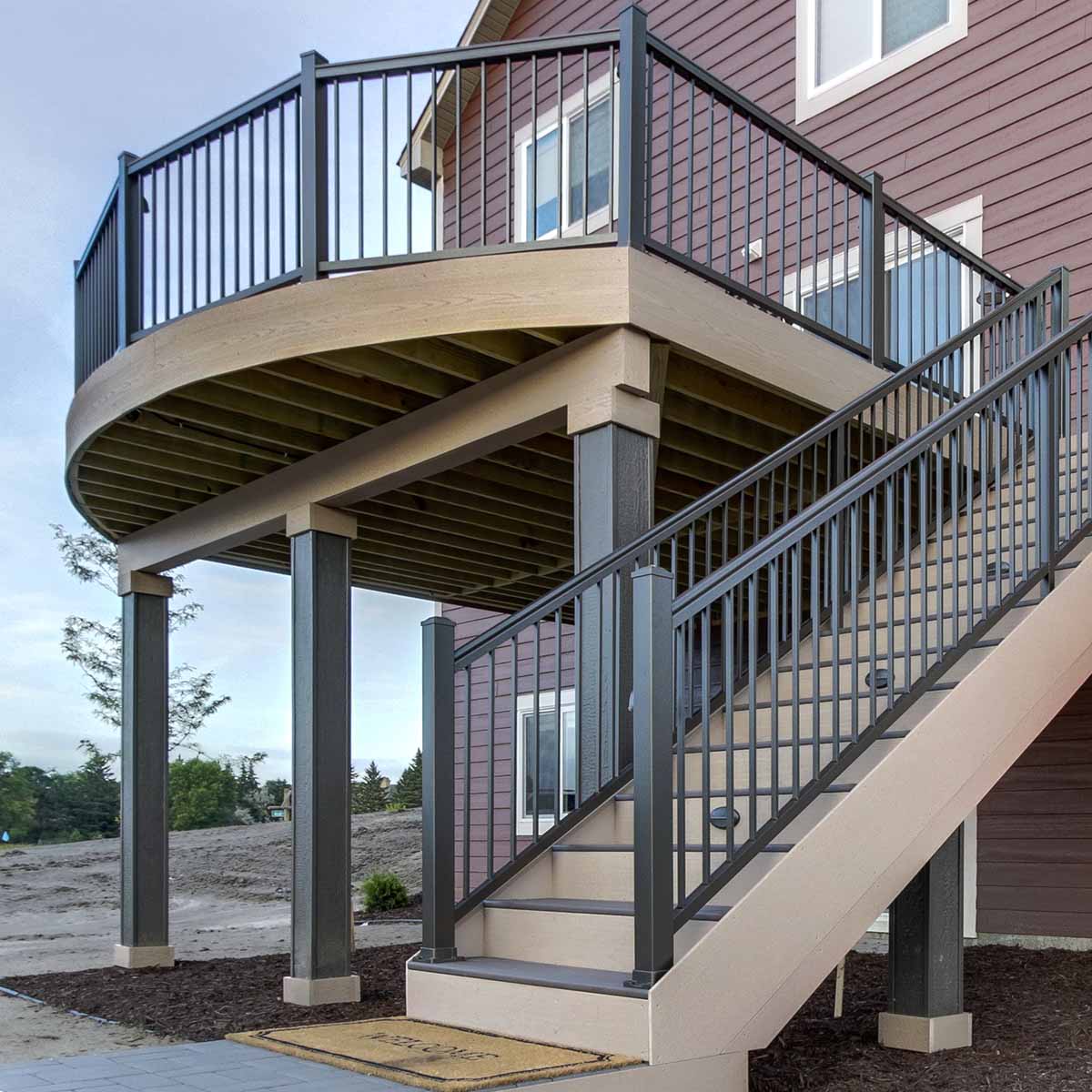 If your deck is tall enough to need a rail, any stairs you have will need a "continuous graspable handrail" to pass inspection. Most aluminum railings are available with a continuous crossover handrail that meets these specifications. If you're working with composite rail or other unique rails, the top rail will not meet these requirements. Graspable handrail rods are the solution to this, and can easily be mounted after the fact.