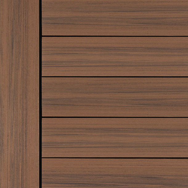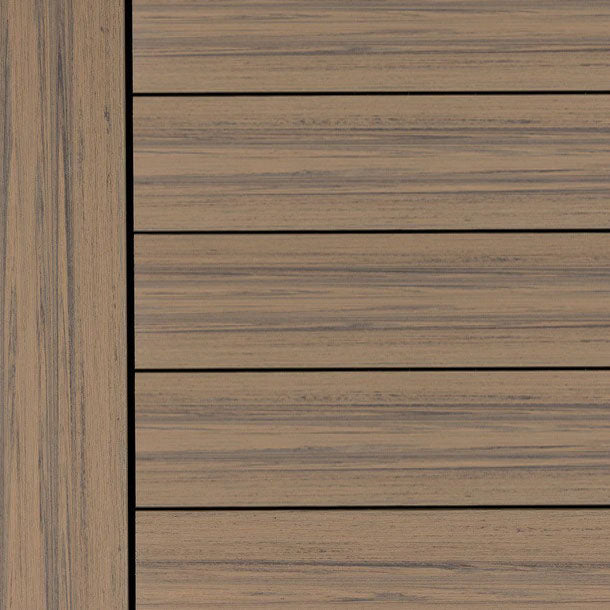 Mineral-based premium-appearance alternative decking with a premium appearance.