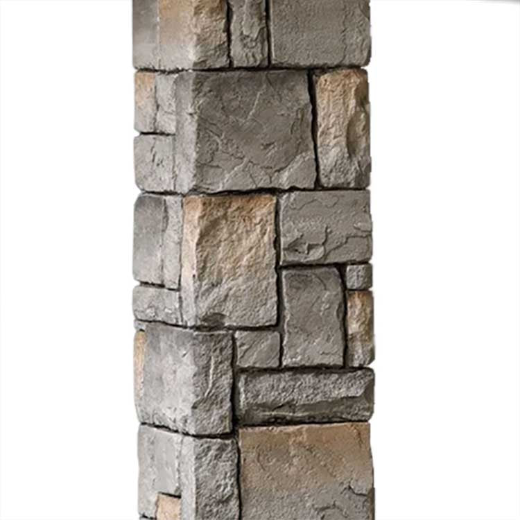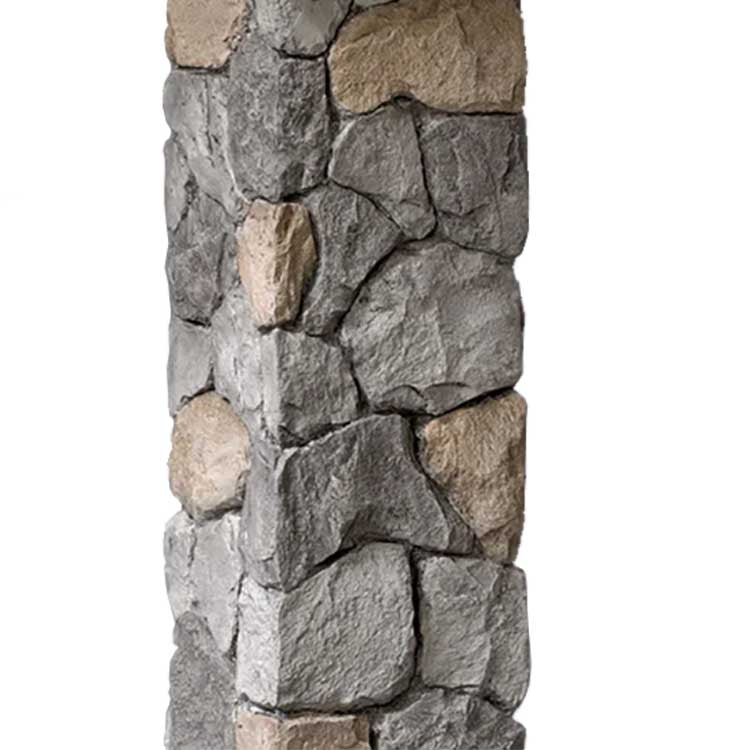 Fiberglass-reinforced concrete post covers textured and colored to look like different stone patterns, adds a unique look to any deck post.