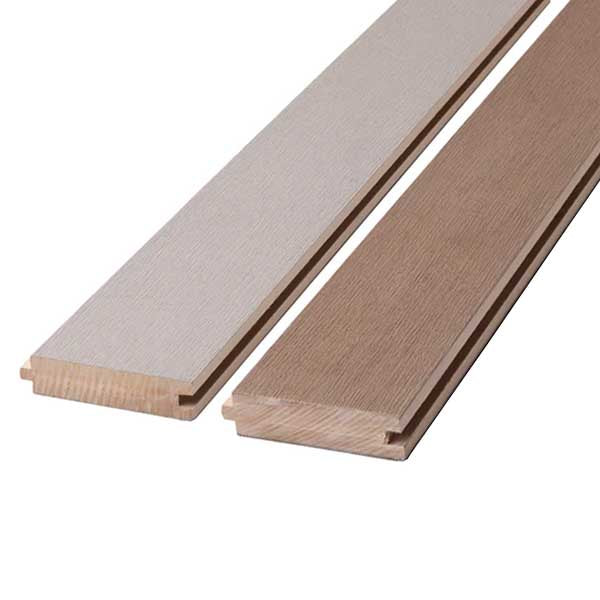 Mineral-based tongue-and-groove 4" porch flooring, in either a solid gray (Kettle) or a variegated brown (Chicory).