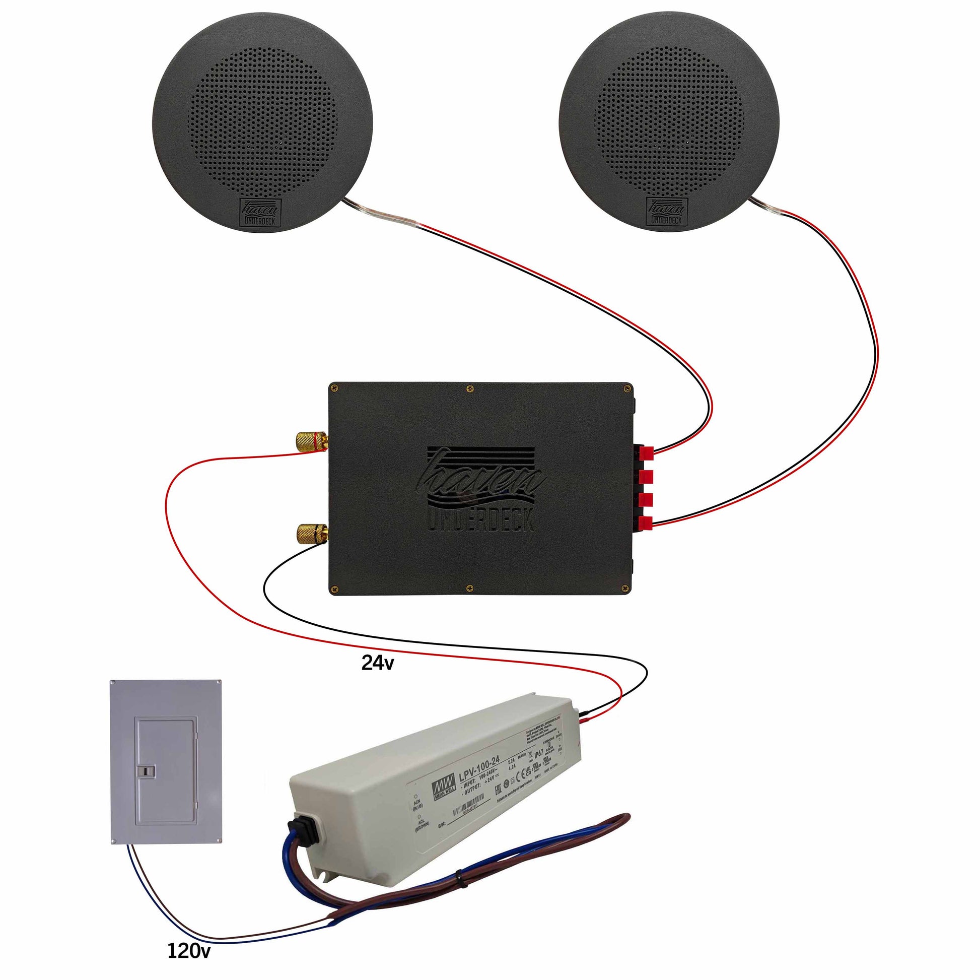 The body of each speaker will need a 6-1/4" diameter hole and 5" of vertical clearance to be installed in a Haven ceiling.