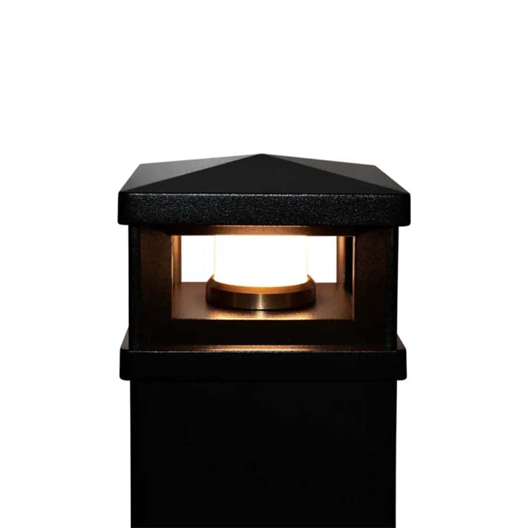 12v post cap light with decorative hooded lantern LED light that mounts to the top of a 3" Impressions post.