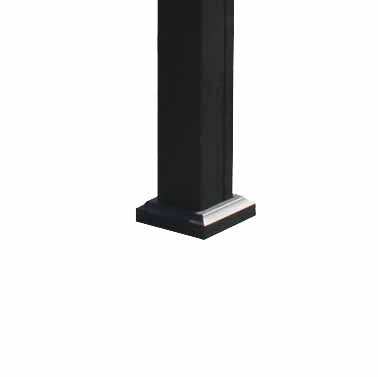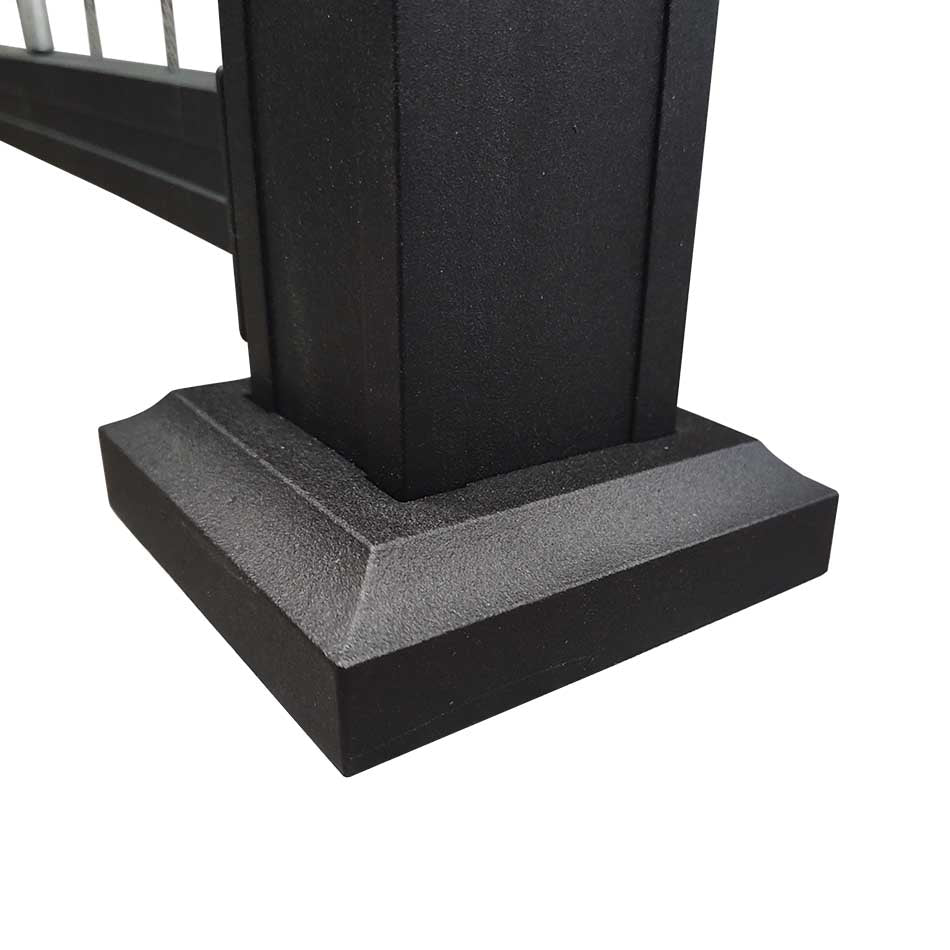 Two-piece post skirts for Keylink surface-mount aluminum posts.