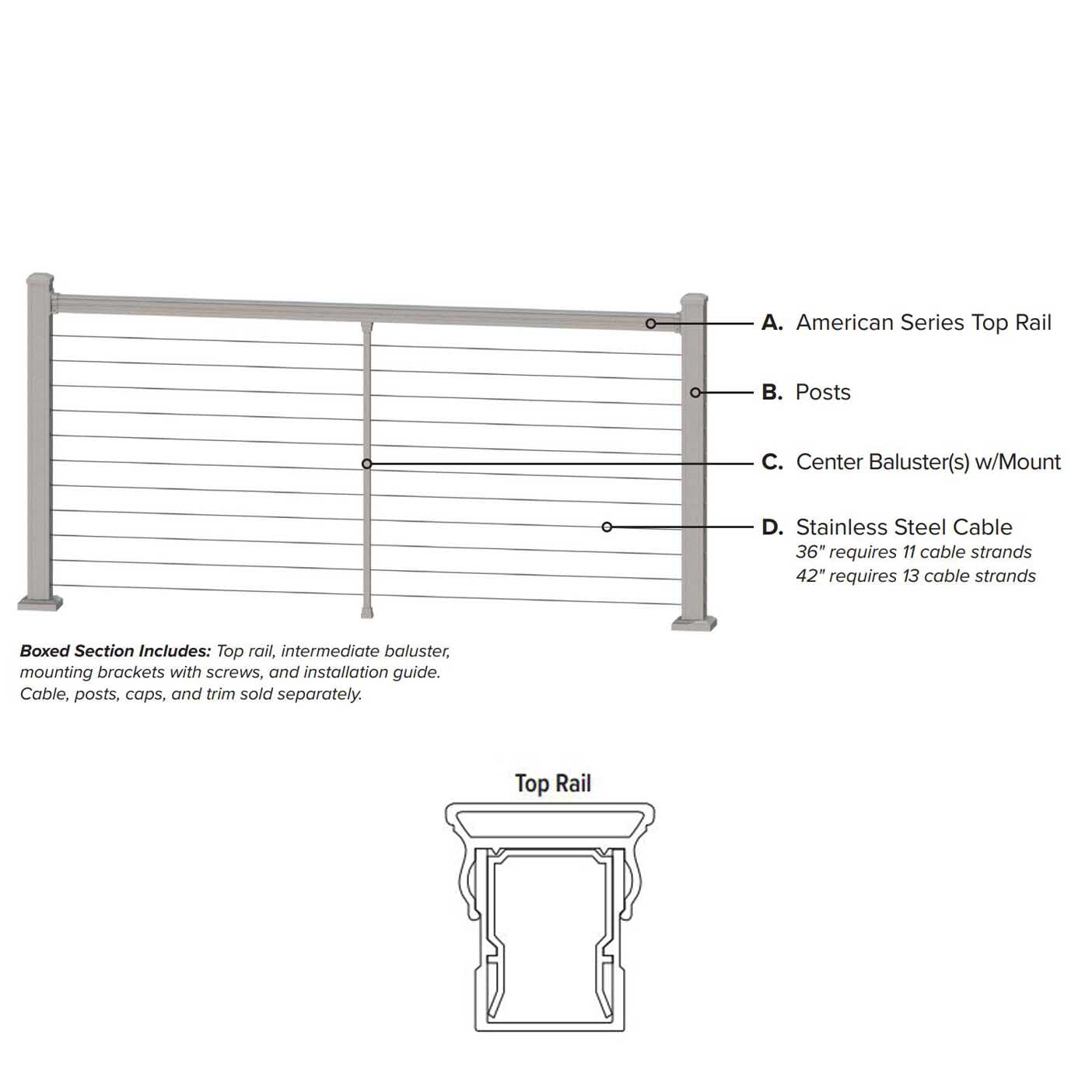 What's Included: Top rail, baluster brace, brace mounting hardware, top rail mounting bracket, screw screws for securing bracket to metal post