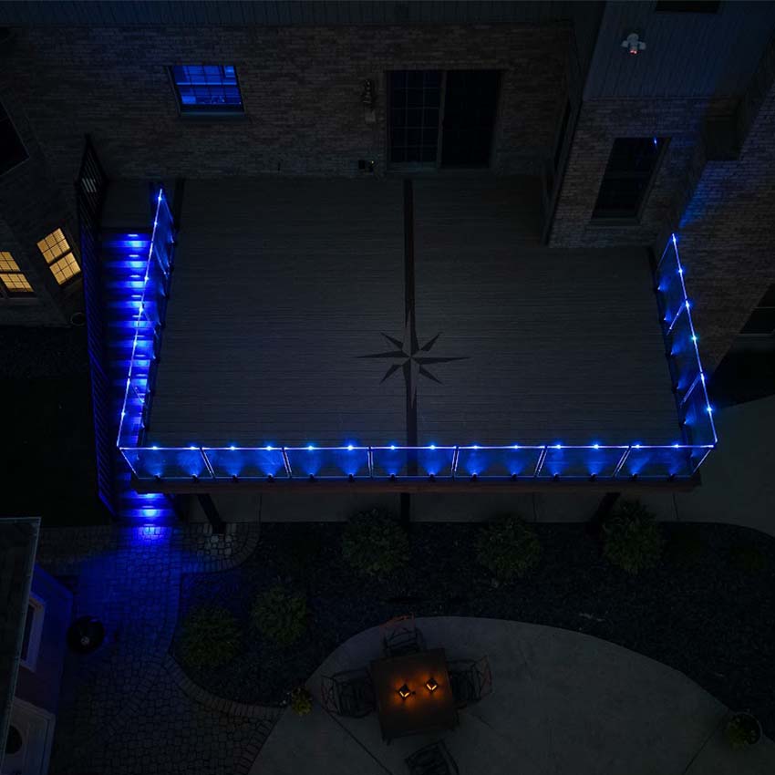 This lighting system enhances your deck’s ambiance with customizable lighting options, adding both style and functionality to your railing system.