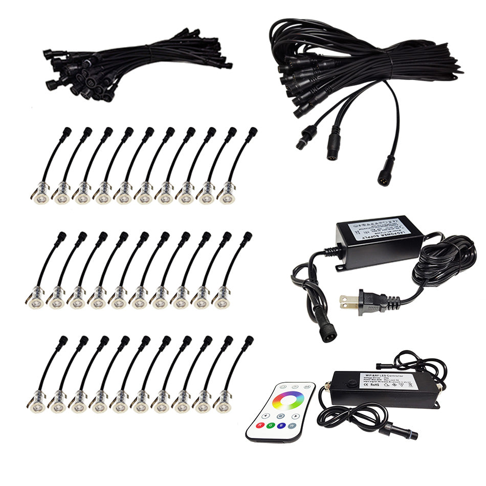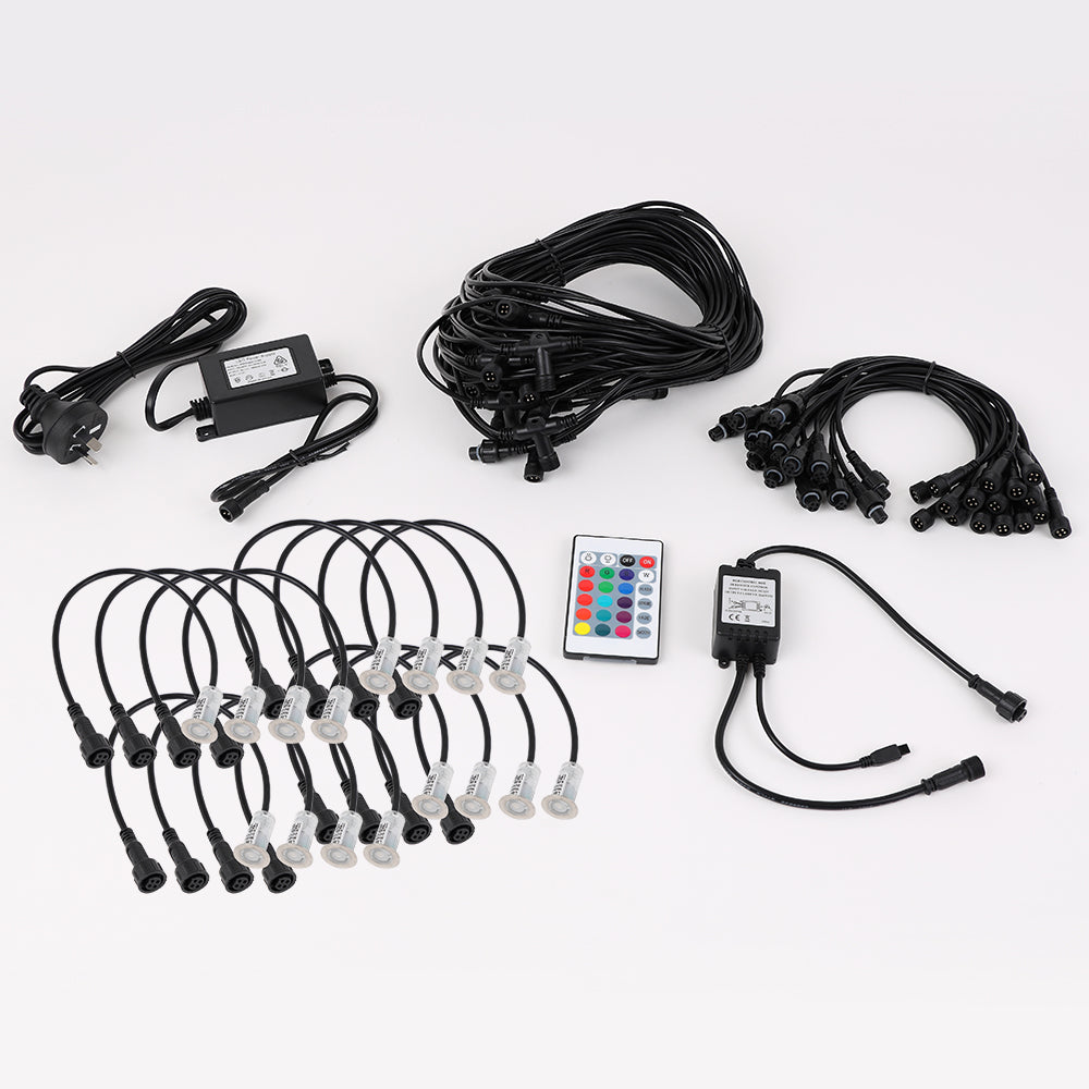 What's Included: Transformer, wifi/remote receiver module, remote, main trunk wire with outlets every 60", LEDs, and LED leads