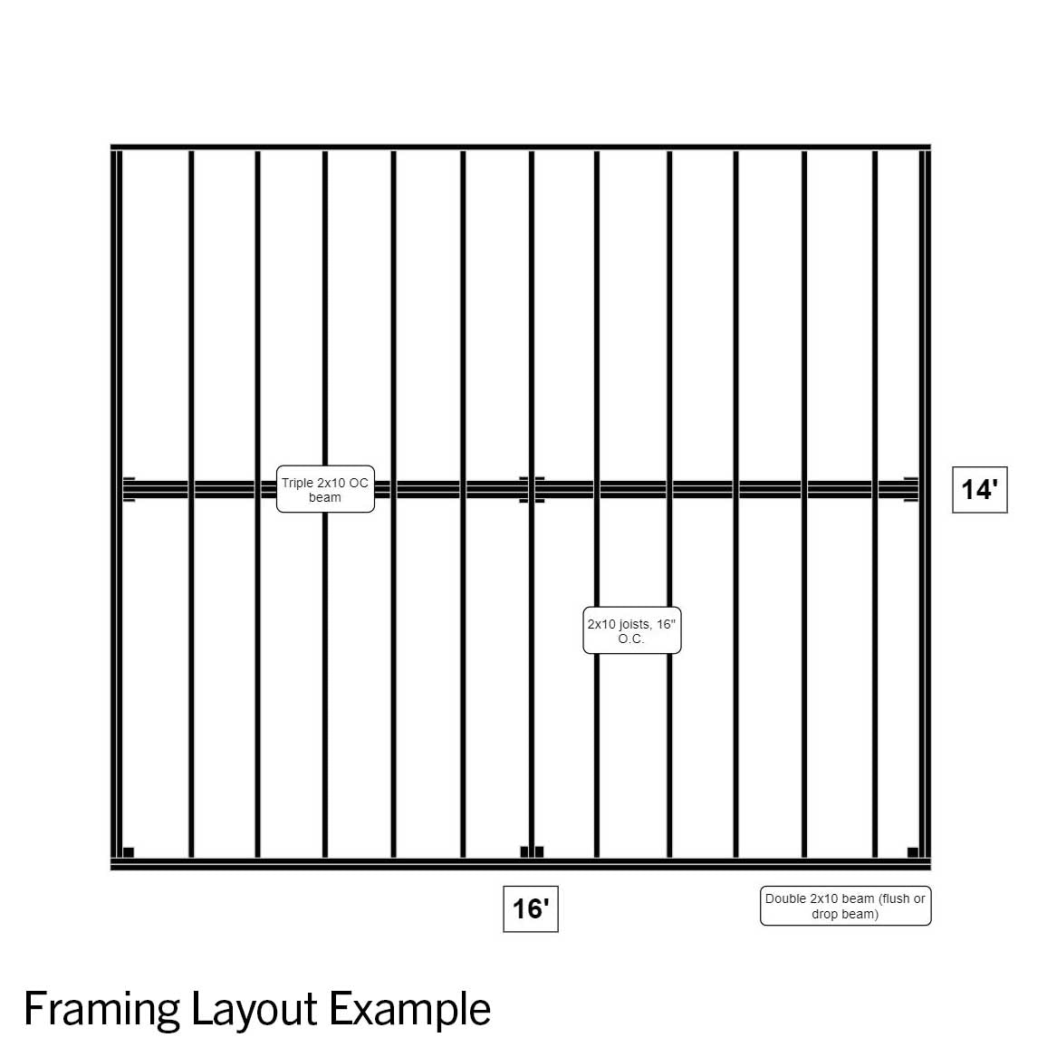 Black structural composite 2x10s by Owens Corning, a premium option for long-lasting framing and a clean, uniform appearance. Can be installed with almost all the same hardware and deck fasteners as normal wood framing.