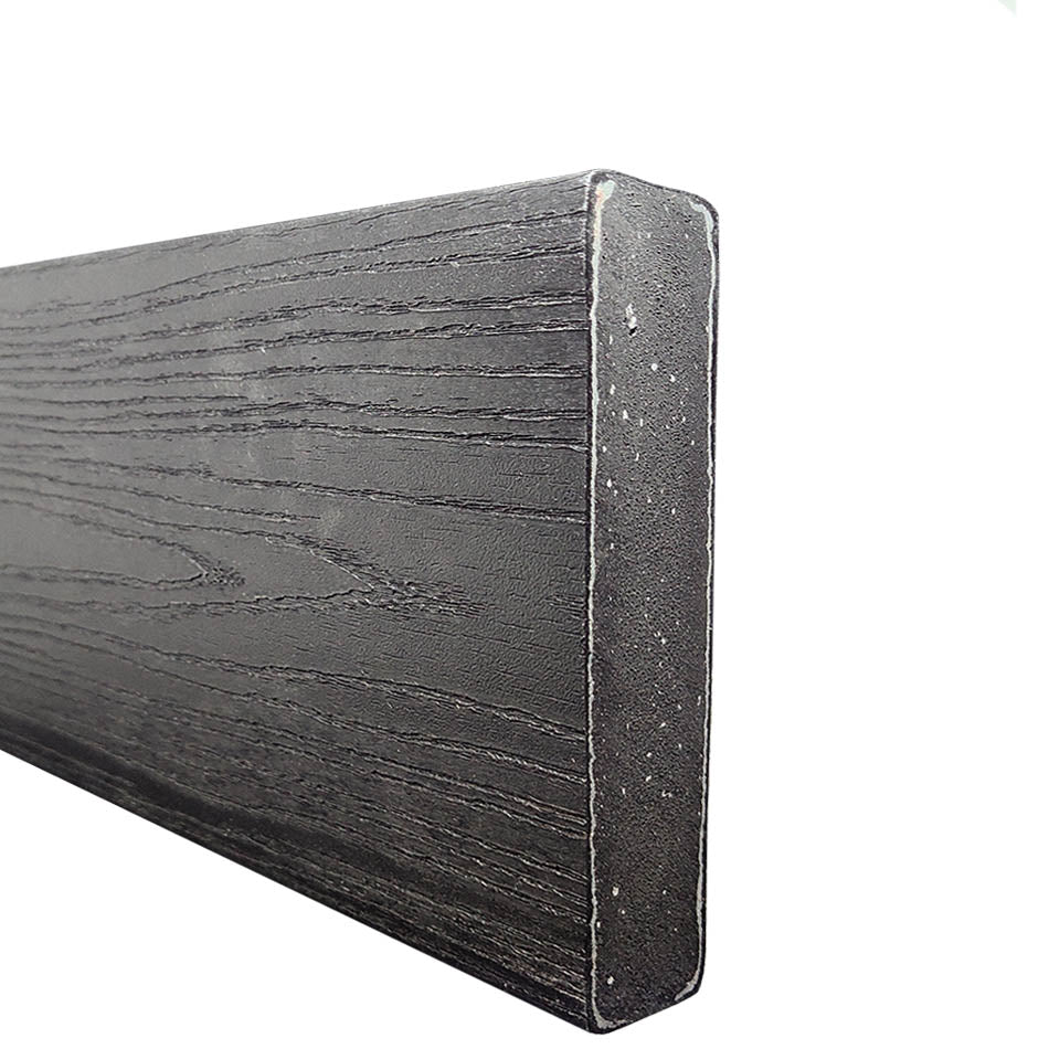 Black structural composite 2x12s by Owens Corning, a premium option for long-lasting framing and a clean, uniform appearance. Can be installed with almost all the same hardware and deck fasteners as normal wood framing.