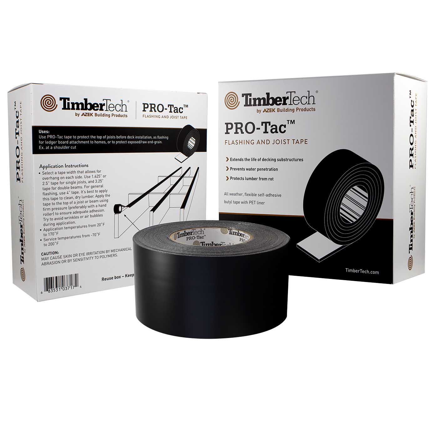 Plastic-backed butyl joist tape by Timbertech. Sold in slightly larger widths to fold over the edges of joists, or for non-standard widths of engineered lumber. Sold in 65 foot rolls