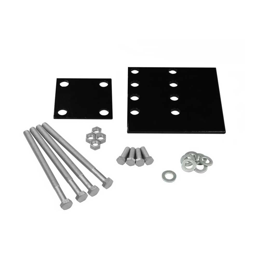 What's Included: Leveling plate, mounting plate, leveling bolts, mounting bolts, washers, and nuts.