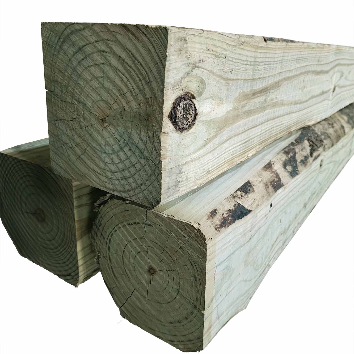 Green treated Southern Yellow Pine (SYP) Ground contact rated posts in less-than ideal condition.