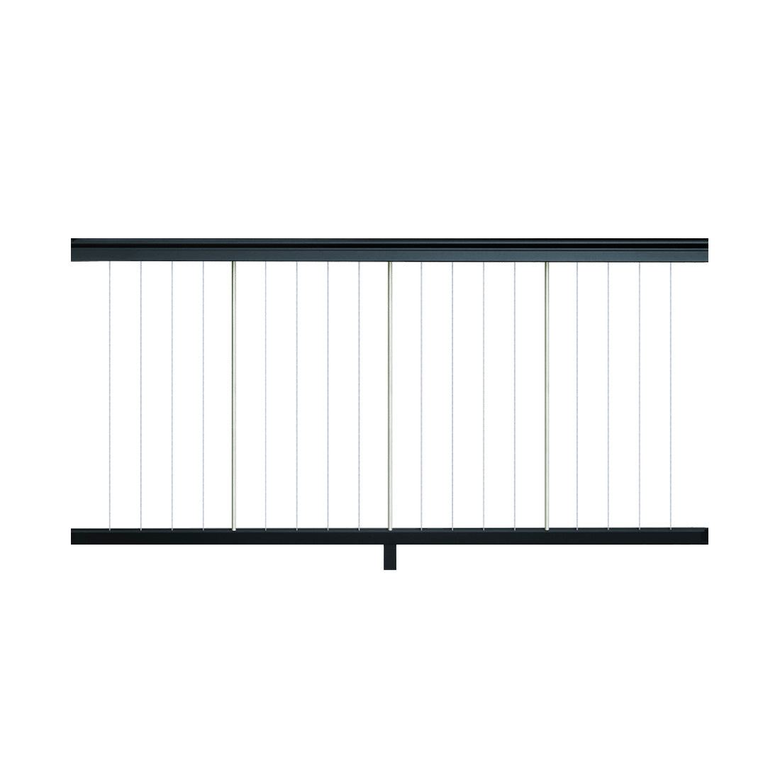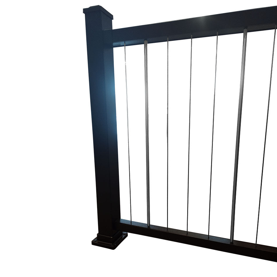 36" residential height vertical cable railing panels with steel vertical braces.